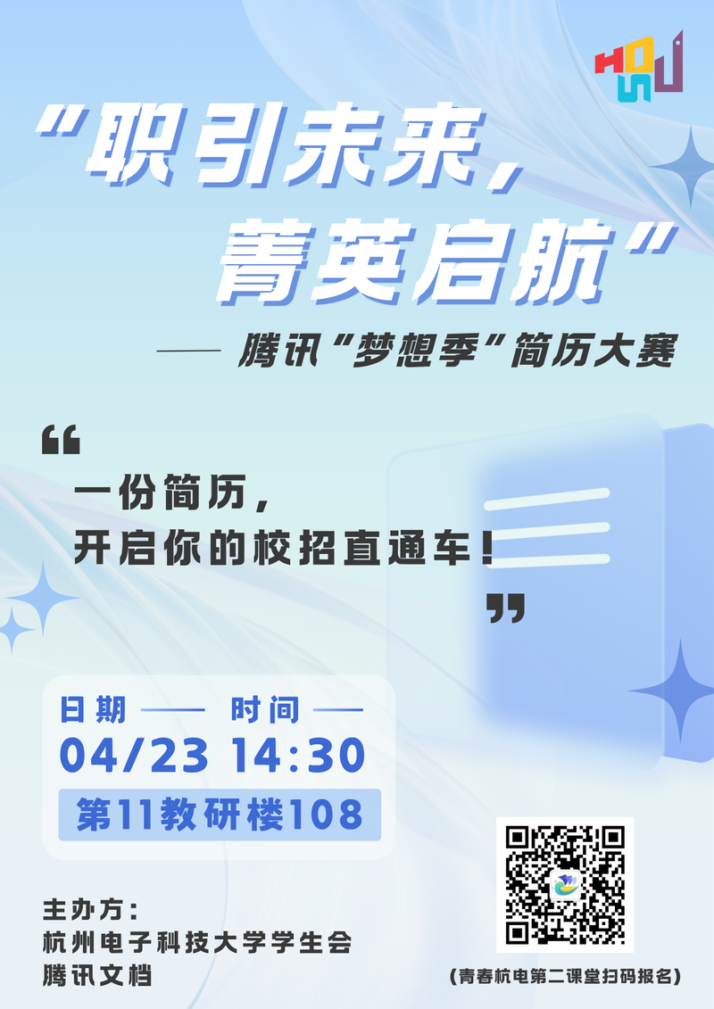 報(bào)名方式:此次活動在“二課系統(tǒng)”進(jìn)行報(bào)名,打開公眾號“青春杭電”,點(diǎn)擊菜單欄“第二課堂”,進(jìn)入“正在報(bào)名”界面即可報(bào)名